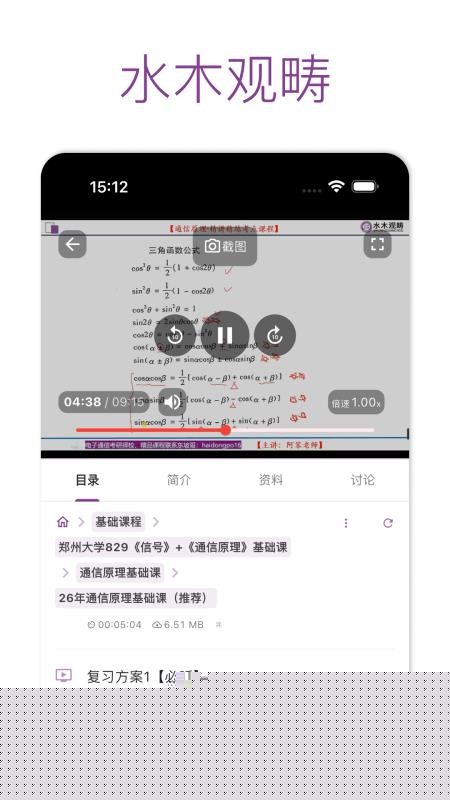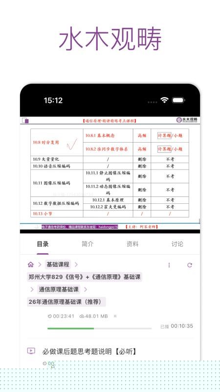 水木观畴教育是一款集在线课程学习、知识管理与互动交流于一体的综合性教育软件,专注于为有升学、考证及职业进修需求的用户提供系统化、专业化的学习软件。其核心在于整合了海量优质教学资源,覆盖多个学科领域与专业方向,通过结构清晰的课程体系、高清视频讲解与配套学习资料,帮助学习者构建完整的知识框架,并借助智能化的学习工具与社区功能,有效提升学习效率与成果,实现个性化的成长路径。