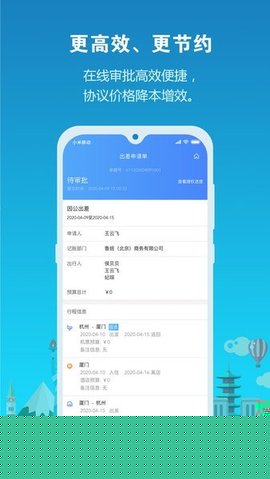 员工无需自行垫资或寻找合规供应商,在一个软件内即可完成从申请到报销的全部操作,并能享受协议价优惠,出行过程更加便捷、省心。