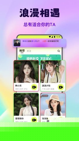 除了基础的视频与文字聊天,还支持在他人主页赠送虚拟礼物等功能,丰富了情感表达的方式,增强了社交的趣味性与粘性。