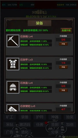 涵盖装备锻造、矿工技能强化与科技研发,构建多元化的角色成长路径。