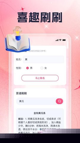 喜刷有福是一款融合了休闲益智、生活指南与创意服务的综合性移动软件,通过精心设计的谜题库激发用户的逻辑思维与推理能力,整合了详尽的菜谱教学体系,助力用户提升日常烹饪水平。软件还提供了基于用户输入的智能取名服务,为个人或项目命名提供多元化、有寓意的参考方案,满足用户在娱乐、学习与生活规划等多方面的需求。