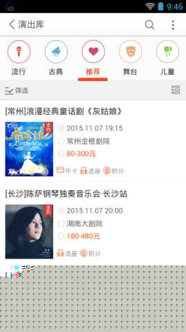 平台整合了海量演出主办方与场馆资源,票务信息涵盖流行音乐、古典艺术、舞台戏剧及亲子娱乐等多元领域,构建了全面的现场娱乐票务数据库。