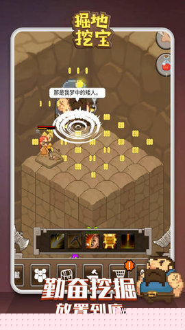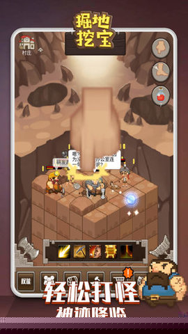掘地挖宝是一款以地底探索与资源管理为核心的放置类冒险手游。将扮演矮人部族的指挥者,率领队伍向未知的深邃地层进发,通过挖掘采集各类矿物与宝石,并利用这些资源合成工具、武器与建筑,以克服挖掘途中遇到的重重障碍与敌对生物,体验从无到有、由浅入深的建设与征服乐趣。