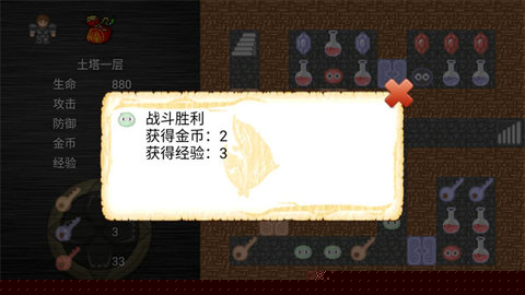 战斗系统采用完全自动化的数值对决。遭遇怪物时,系统会根据双方的攻击力、防御力和生命值自动结算战斗结果。战前评估至关重要。必须养成习惯,在接触任何敌人前查看其属性面板,精确计算战斗后的生命值损耗。面对强力敌人时,往往需要先积累金币提升基础属性,或寻找隐藏的宝石强化自身,才能以最小代价通过。