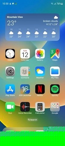 彻底替换安卓原生的下拉菜单,提供与iOS 16布局、图标完全一致的控制中心;将状态栏的信号、电量等图标更换为iOS设计风格。
