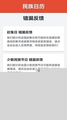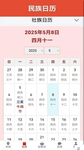 民族日历是一款专注于中国56个民族传统节日与地方性集市信息的综合性文化软件整合了详尽的公历与农历对照、节日文化解读以及区域性赶集日程,为用户提供兼具实用价值与文化深度的日常参考,帮助用户更好地规划生活与深入了解多元民族文化。