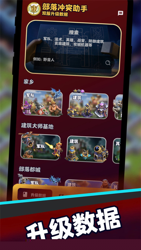 构建详尽的兵种、法术及建筑属性数据库,包含升级成本、时间等关键参数,为长期发展路径规划提供数据基石。