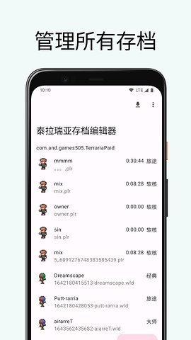 TR存档编辑器是一款专为泰拉瑞亚移动版设计的专业存档管理工具,其核心功能在于对游戏存档文件进行深度解析与可视化编辑。通过直观的操作界面,用户能够直接修改角色属性、物品库存、世界状态等关键数据,从而自定义游戏进程,为泰拉瑞亚的沙盒冒险体验增添了强大的个性化支持。