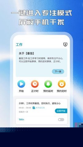 在番茄钟功能中,用户可选择任务并设定一个专注时长(如25分钟),期间软件会辅助屏蔽干扰,时间结束后提示休息,循环进行。