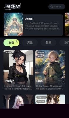 软件内汇集了涵盖多种人设与背景的AI角色,从校园生活到职场风云,为用户提供广泛的选择空间。