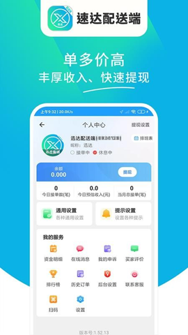 提供实时更新的收益看板与明细数据,所有配送任务的酬劳计算清晰可视,支持快速提现。