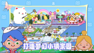 构建了包含住宅区、商业街、农场、公园与海滩的广阔卡通小镇,每一处建筑与角落均可点击互动,赋予极高的探索自由度与沉浸式体验。