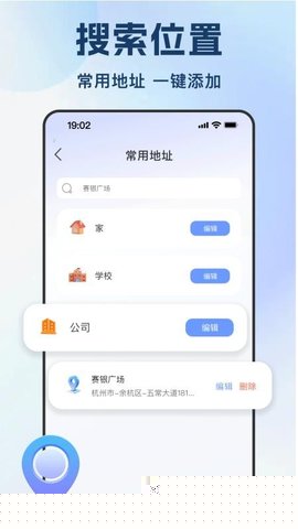 支持用户自定义保存家庭、公司等常用地址,实现快速检索与一键导航,简化操作流程。