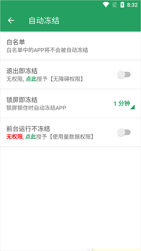 主要功能需要获取Root权限以实现深度冻结。若设备未Root,可尝试在安卓模拟器环境中运行,部分功能仍可使用。
