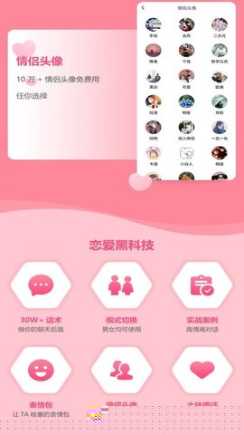 集成高质量的聊天斗图、情感文案配图以及情侣头像等视觉化素材,为用户提供立体的社交表达工具,丰富线上互动的维度与趣味性。