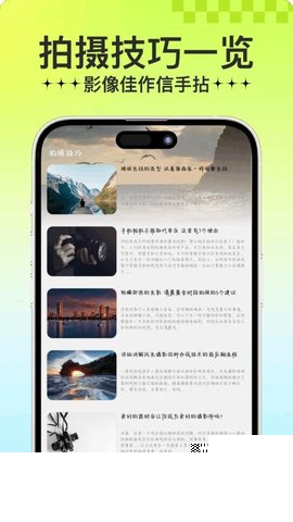 内置的摄影知识库涵盖构图、用光、色彩理论等实用技巧,以图文或短视频形式呈现,有助于用户系统性提升摄影审美与实操能力。