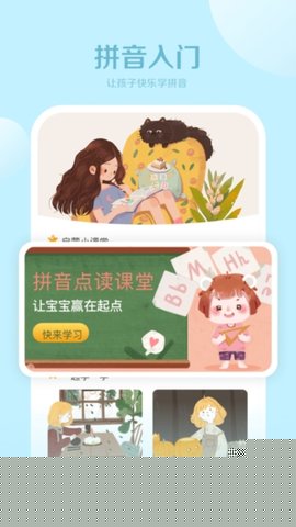 采用高品质动画与卡通形象构建学习情境,将拼音知识融入故事和极大激发儿童主动探索与学习的兴趣。
