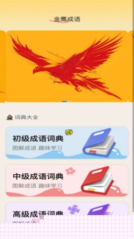 金鹰成语是一款专注于成语学习的教育类软件,帮助用户系统掌握成语知识、理解文化背景并提升语言运用能力,整合了海量成语资源,提供详尽的释义、典故及用法解析,结合题库练习与灵感记录功能,构建了多维度的学习体验,适合不同阶段的成语爱好者使用。