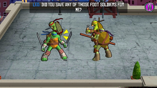 战斗操控依赖于屏幕上的虚拟按键与滑动手势。左侧区域控制人物移动,右侧则分布有攻击、跳跃及技能按键。通过不同方向的滑动可以触发特殊的冲刺攻击或闪避动作。核心技巧在于熟练掌握每位神龟的普攻连段与范围技能,并依据战场形势灵活切换角色,使用多纳泰罗的长棍进行远程牵制,或切换拉斐尔近身爆发。