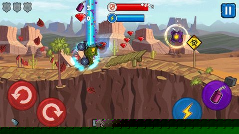 掌握核心操作是迈向胜利的第一步。进入赛道后,画面左侧虚拟摇杆负责控制车辆的前后重心移动,这对于飞跃断崖、平稳落地至关重要。右侧区域则集中了加速、刹车以及道具使用按键。加速键提供持续动力,而道具键可在拾取炸弹等物品后瞬间释放,对前方对手造成干扰或伤害。熟练协调左右手操作,是实现高速行驶与精准打击的基础。