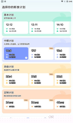 内置多种经过验证的主流间歇性禁食模式,如16:8、18:6、5:2等,用户可根据自身情况一键启用,无需手动计算时间窗口,极大降低了入门门槛。
