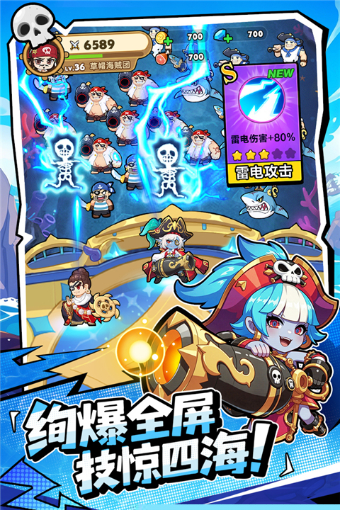 具体操作围绕战斗与成长展开。在战斗场景中,船长会自动进行普通攻击,需要手动点击屏幕释放已装备的主动技能。技能的释放时机与目标选择是战斗的艺术。击败敌人后,通过拾取经验球提升等级,并在随机出现的三个技能中选择其一,逐步构建你的专属技能体系。注意观察战场上的天气变化,某些天气会对特定类型的技能或敌人产生增益或削弱效果,善加利用能事半功倍。