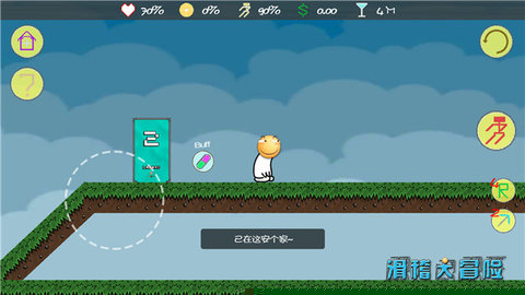 核心玩法围绕着操控滑稽表情穿越一系列设计精巧的关卡。主要目标是从起点安全抵达终点,过程中需要克服地形障碍、躲避或利用敌人,并解开环境谜题。操作方式直观,左侧虚拟摇杆控制角色移动,右侧按键负责跳跃与互动,通过组合这些基础动作来完成攀爬、推动、弹射等复杂行为。