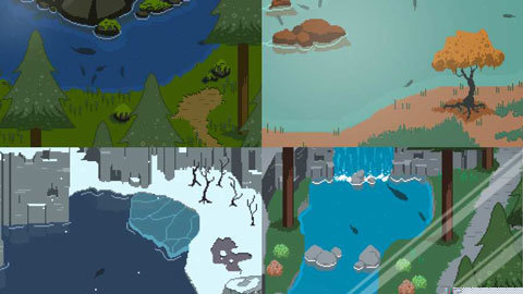 经典像素风格结合动态光影与水波效果,营造出色彩明快、氛围宁静的峡谷景观,每一帧画面都宛如精致的数字插画。
