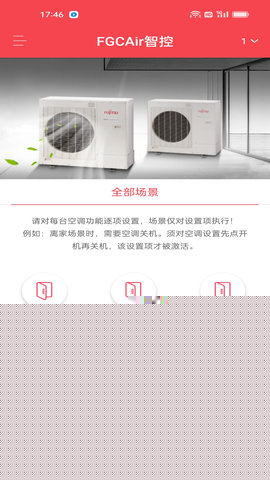 FGCAir智控是一款面向现代家庭的智能家居集中管理软件通过统一的移动端界面,将分散的空调、照明、环境传感器等各类智能硬件整合起来。用户能够随时随地监控家中设备的实时状态并进行精细化调控,系统还会基于设备运行数据主动推送关键通知,从而实现跨空间、全天候的居家环境智能感知与主动管理。
