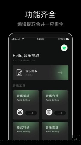 界面布局清晰,功能模块划分明确,即使是音频编辑的初级用户也能根据引导快速上手,完成音乐提取、剪辑等操作。