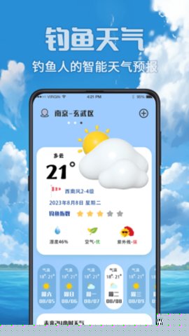 同步呈现实时风速、风向、波浪、水温及能见度等关键海洋气象参数,结合未来7天天气预报,构建全面的出钓安全与舒适度评估体系。