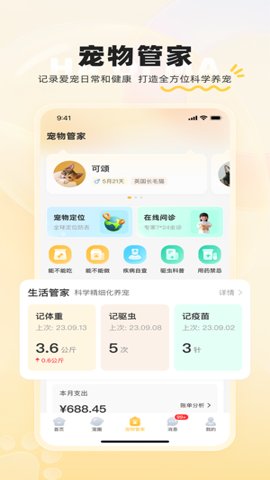 提供宠物体重、疫苗接种、驱虫等关键健康数据的记录与追踪功能,并设有智能提醒系统。