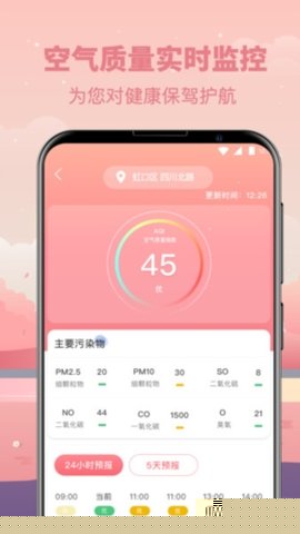 实时发布PM2.5、PM10、臭氧、二氧化氮等主要污染物浓度及空气质量等级(AQI),并给出健康出行建议,特别关注敏感人群的防护指导。