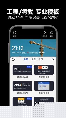 内置的水印模板库设计专业,分类清晰,能够精准契合建筑、安保、物流、零售、商务接待等多个垂直领域的现场记录与汇报要求。