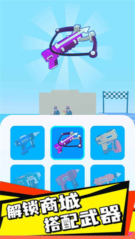 核心武器钉子枪可通过关卡收益进行多维度强化升级,包括威力、射速与精准度,伴随成长。