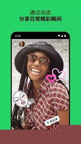 提供状态功能,允许用户发布包含文字、图片、视频的限时动态,24小时后自动消失,这一设计模仿了社交网络的故事模式,丰富了单向广播与互动形式。
