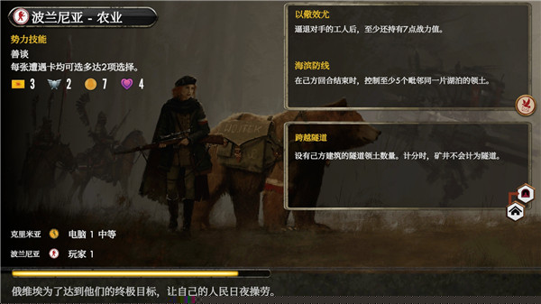 理解核心循环是掌握这场东欧争霸的关键。对局由轮流选择并执行行动面板上的指令推进。面板分为上下两层,上层行动通常带来直接资源收益,如收获、交易;下层行动则侧重于长期发展,如建造、招募。一个精妙的策略在于利用升级行动,将上层的方块移至下层对应的凹槽中,此举能永久提升上层行动的收益,并减少下层行动的资源消耗,从而优化行动效率,构建更强大的国家机器。