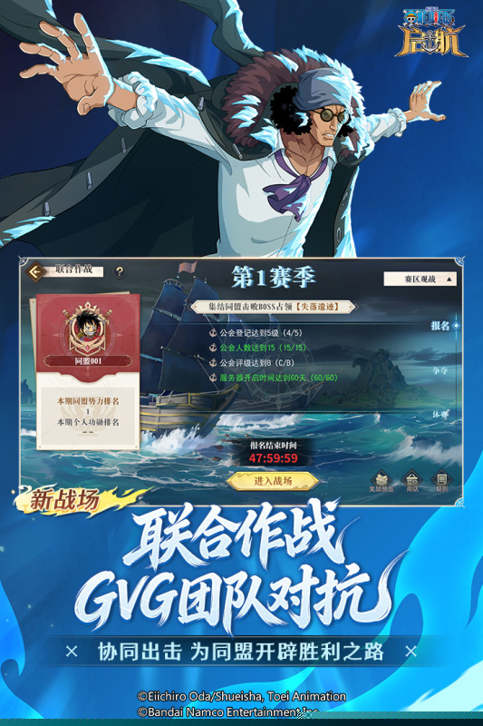 可升级改造梅利号或桑尼号,参与实时海域争夺,体验炮火纷飞的舰队对决。