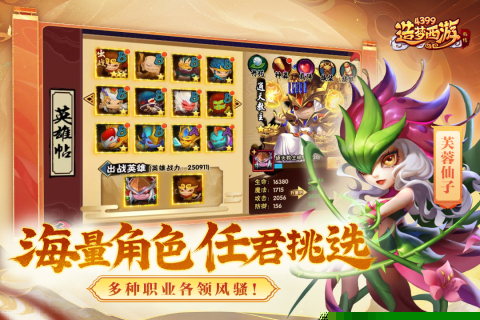 汇聚了唐僧师徒、天庭众神、地府鬼卒乃至妖族大圣,上百位角色可供招募与培养,组建专属阵容。