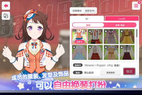 提供了大量风格各异的时装、饰品及舞台服装,支持自由搭配,打造独一无二的偶像形象,让每位少女都能以最闪耀的姿态亮相于聚光灯下。