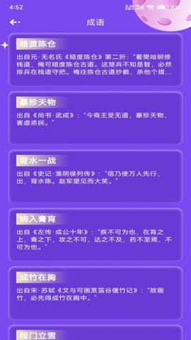 用户在查询成语基本含义时,可同步查看其背后的历史故事与演变脉络,解决传统学习中知其不知其然的痛点。