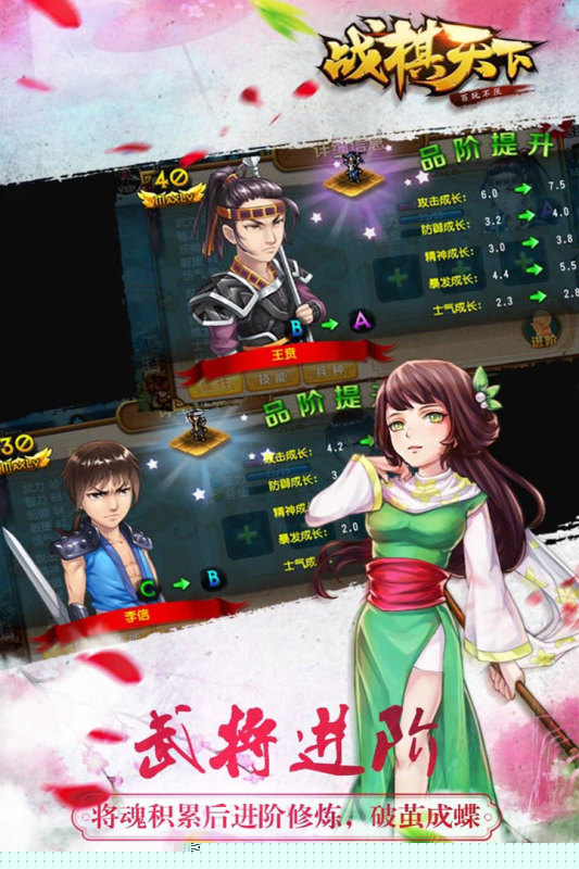 汇聚春秋战国时期的知名武将与谋士,每位角色拥有独特技能与成长线,构建多样化的阵容组合。