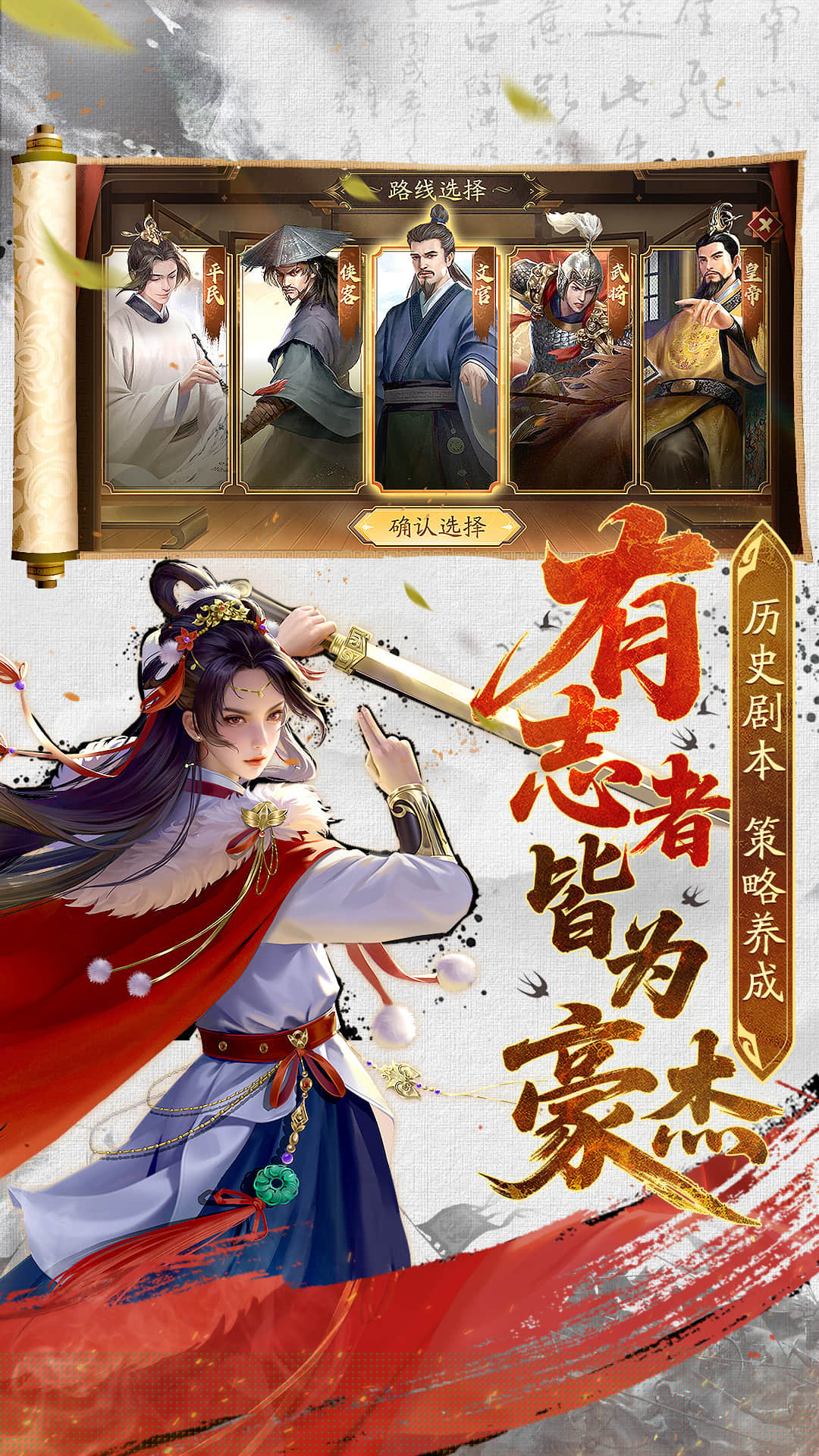 涵盖文韬武略、人际网络、资源经营等多维度属性成长,角色的发展方向由全权掌控。