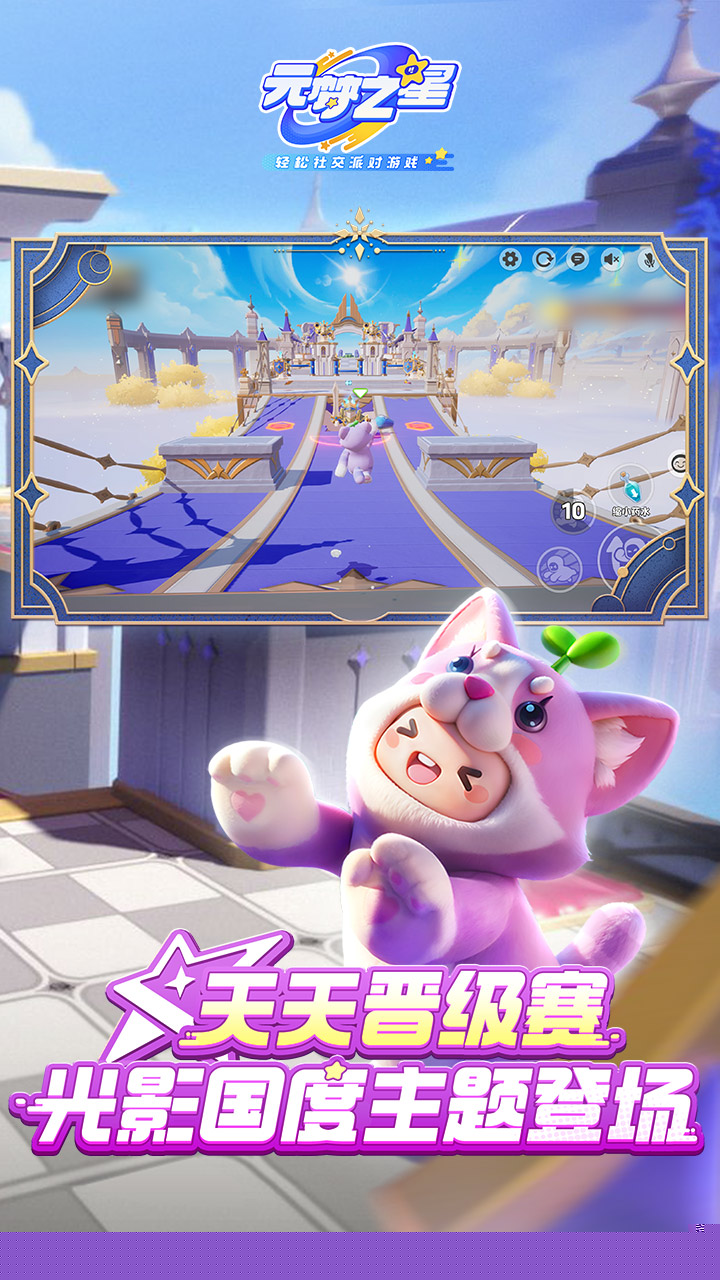 元梦之星是一款由腾讯天美工作室群研发的派对游戏,以萌趣星宝形象与多元创意玩法为核心,在光影交织的奇妙世界里,将体验竞速闯关、团队对抗、休闲社交等丰富内容,开启一段充满欢乐与挑战的冒险旅程。