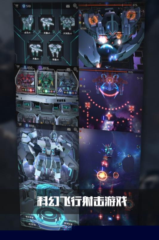 提供多种风格迥异的星际战机选择,每款机型拥有独特的攻击模式与专属技能树。