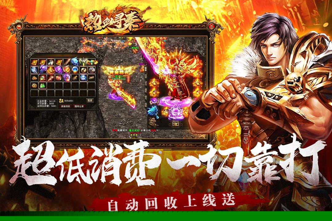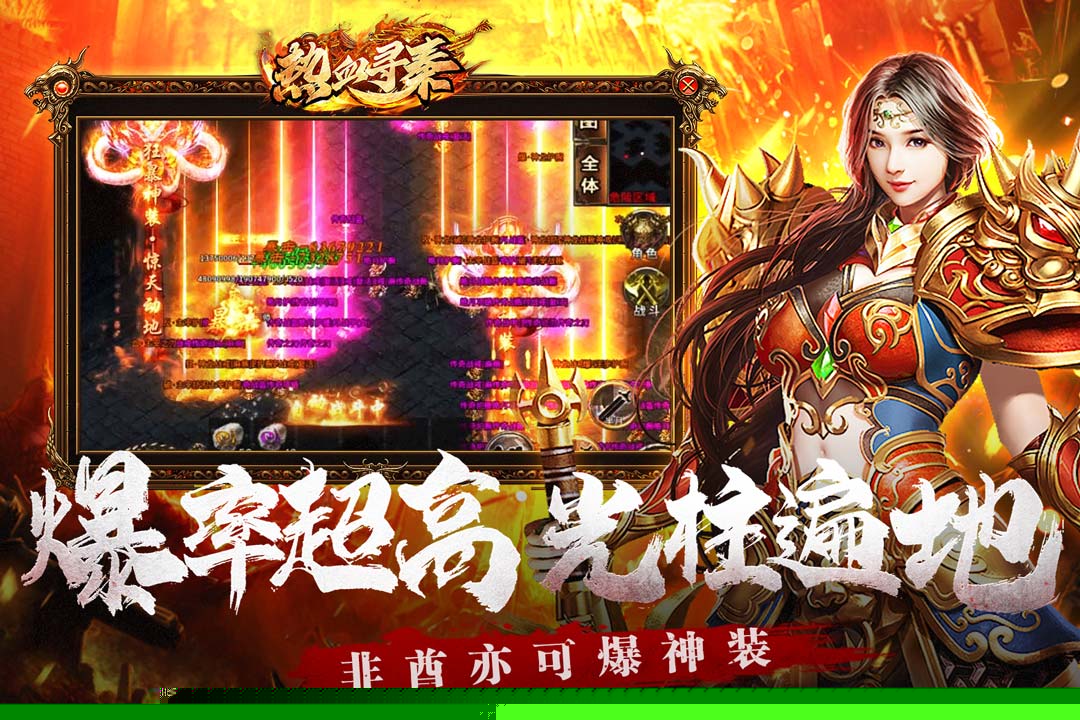 热血寻秦是一款融合了经典传奇元素与现代打金理念的角色扮演手游,以战国风云为背景舞台,构建了一个自由交易、热血攻沙的虚拟世界。将扮演一名穿越至乱世的冒险者,通过不断历练、收集神兵、挑战强敌,体验从无名小卒到一方霸主的成长历程,享受装备爆率全开、技能特效华丽的畅快战斗与社交互动。