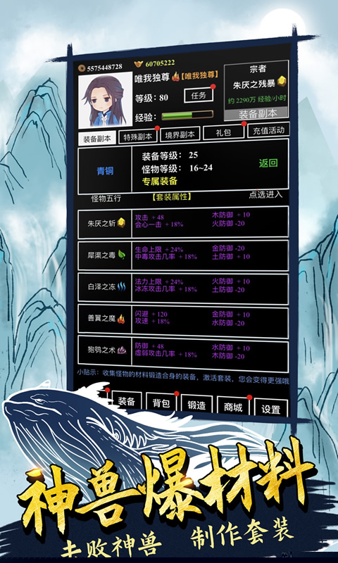 当修为达到一定层次,玩法重心需转向深度策略构建。五行系统是战力的核心放大器,深入研究相生相克关系。若主修火属性功法,则优先收集火系材料锻造武器,寻找木系材料(木生火)强化辅助部件,并应针对性提升对金系(火克金)敌人的伤害。挑战神兽前,务必根据其属性调整装备五行搭配,并备足恢复丹药。