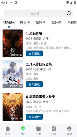 除了常规的类型、地区、年份筛选,还提供基于实时热度的排行榜单,帮助用户高效发现当前流行的影视内容。