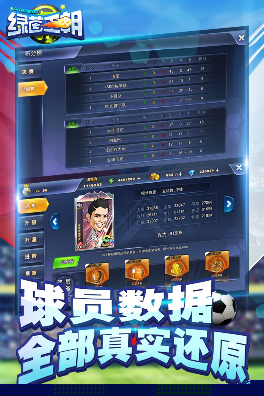 依托庞大的现实球员数据网络,构建了高度拟真的球员能力值与成长曲线。