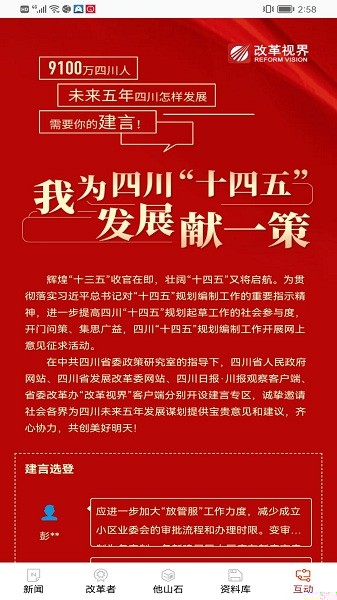 提供信息,更开辟了公众就改革议题发声、讨论的正式渠道,是实践社会治理共建共治共享理念的数字载体。
